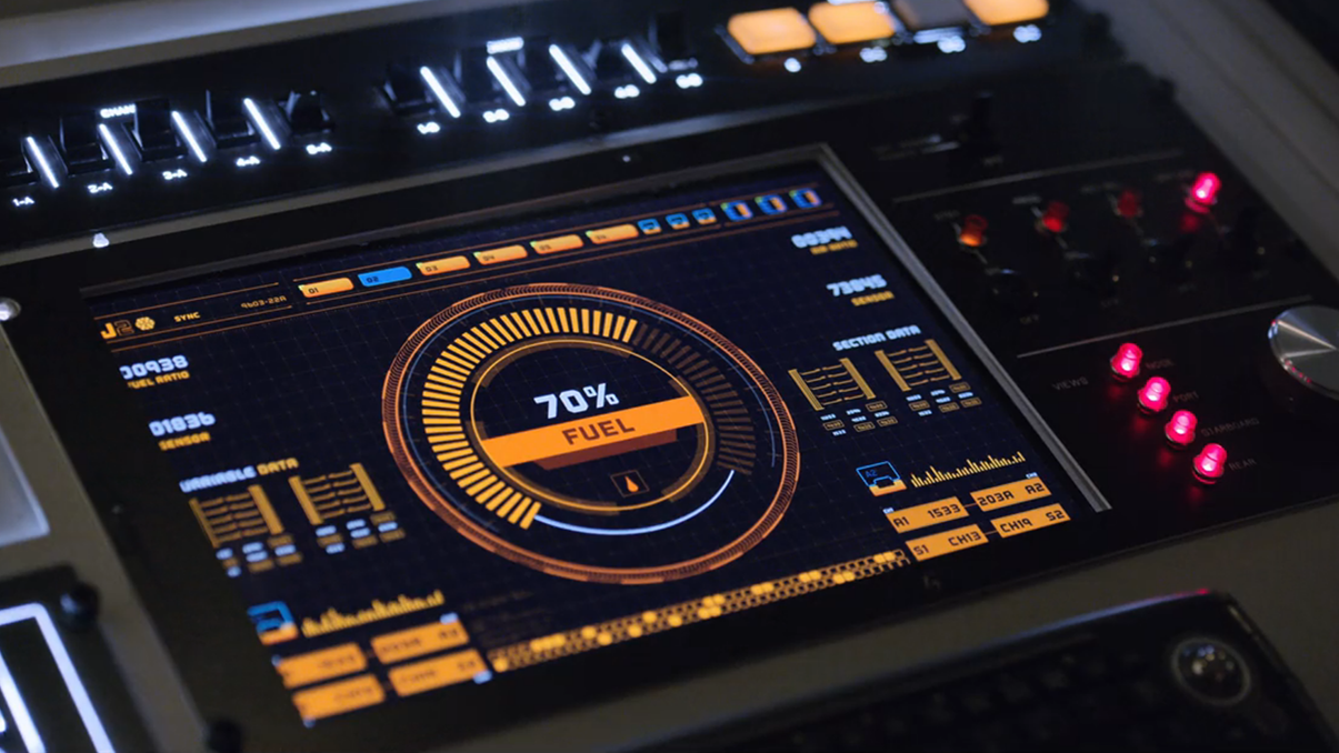 Demonstration for Sim Digital's Open House - Playback Division. We built a spaceship control panel consisting of two 50' flat screens and a rear projection Glass Panel. The Glass Panel acted as a real life HUD projecting into the Pilots Field of vision.