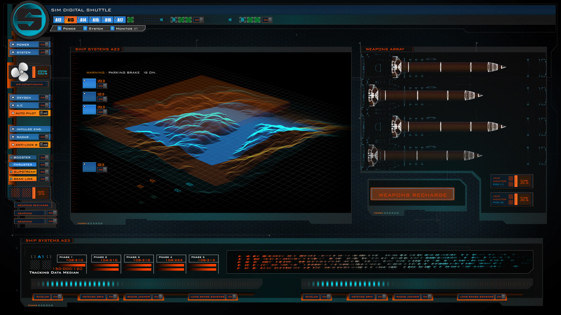 Demonstration for Sim Digital's Open House - Playback Division. We built a spaceship control panel consisting of two 50' flat screens and a rear projection Glass Panel. The Glass Panel acted as a real life HUD projecting into the Pilots Field of vision.
